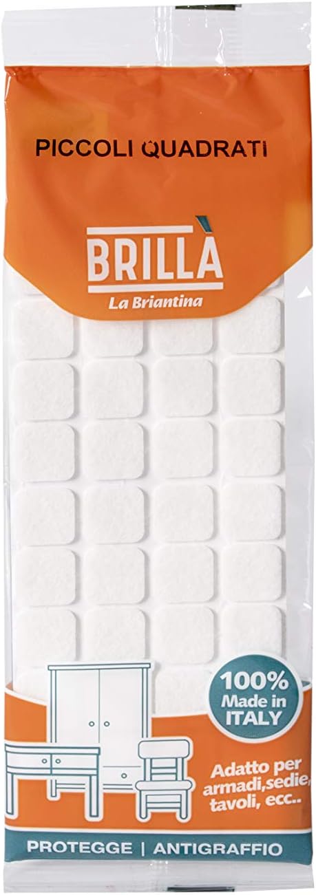 Square walnut felt gliders, perfect self-adhesive felt pads that help prevent noise from moving and protect furniture and floors from abrasion marks or scuffs.Composition: felt pads 100% polyester, 100% hot melt glueDimensions: 25 x 25 mm; height 2 mmPack: 8 pcs.Product image is for reference purposes only. The colour of the item may vary slightly.