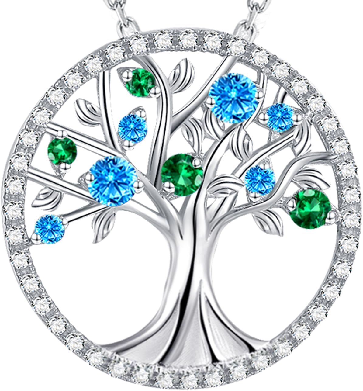 | Style | Tree of Life aquamarine birthstone sterling silver necklace |